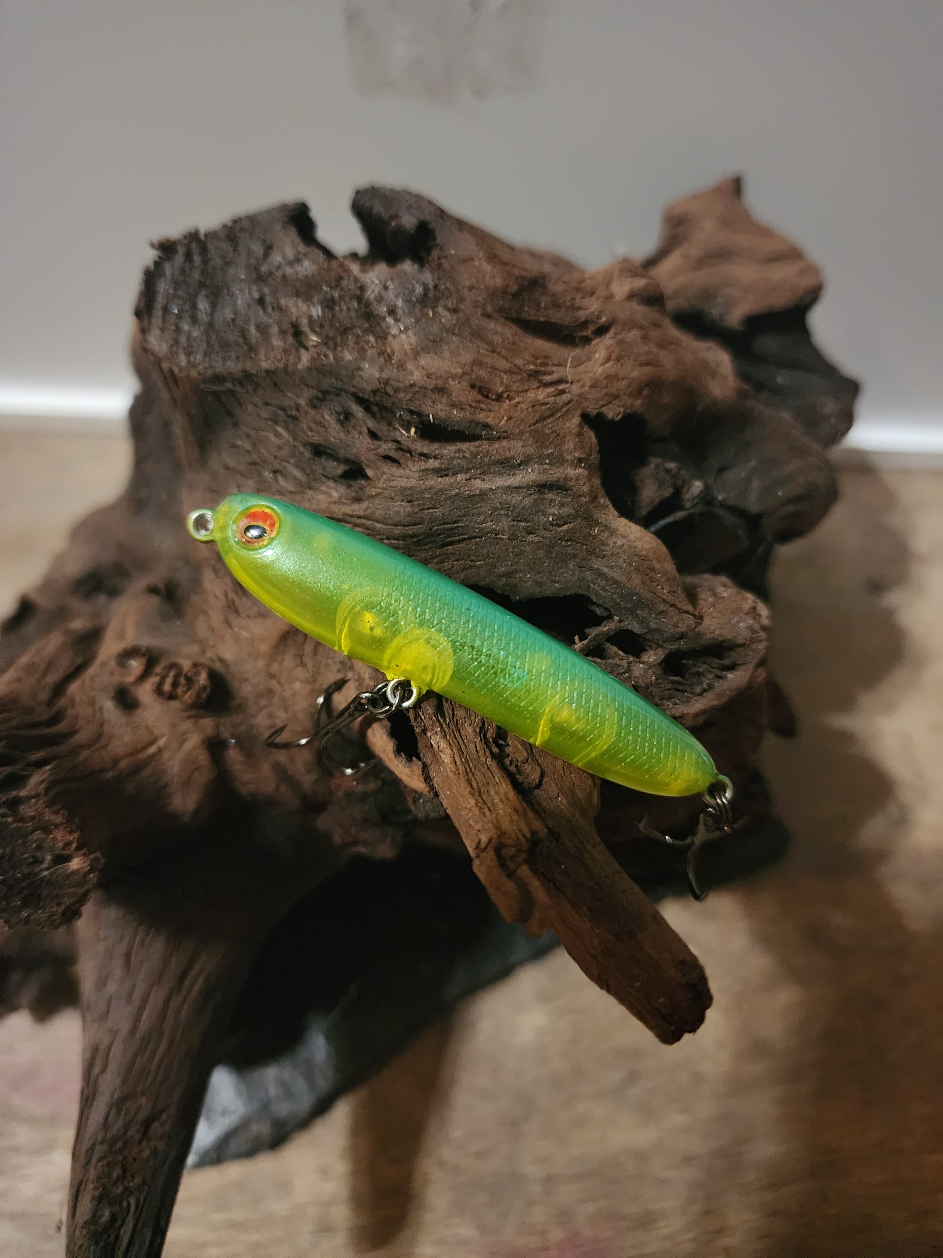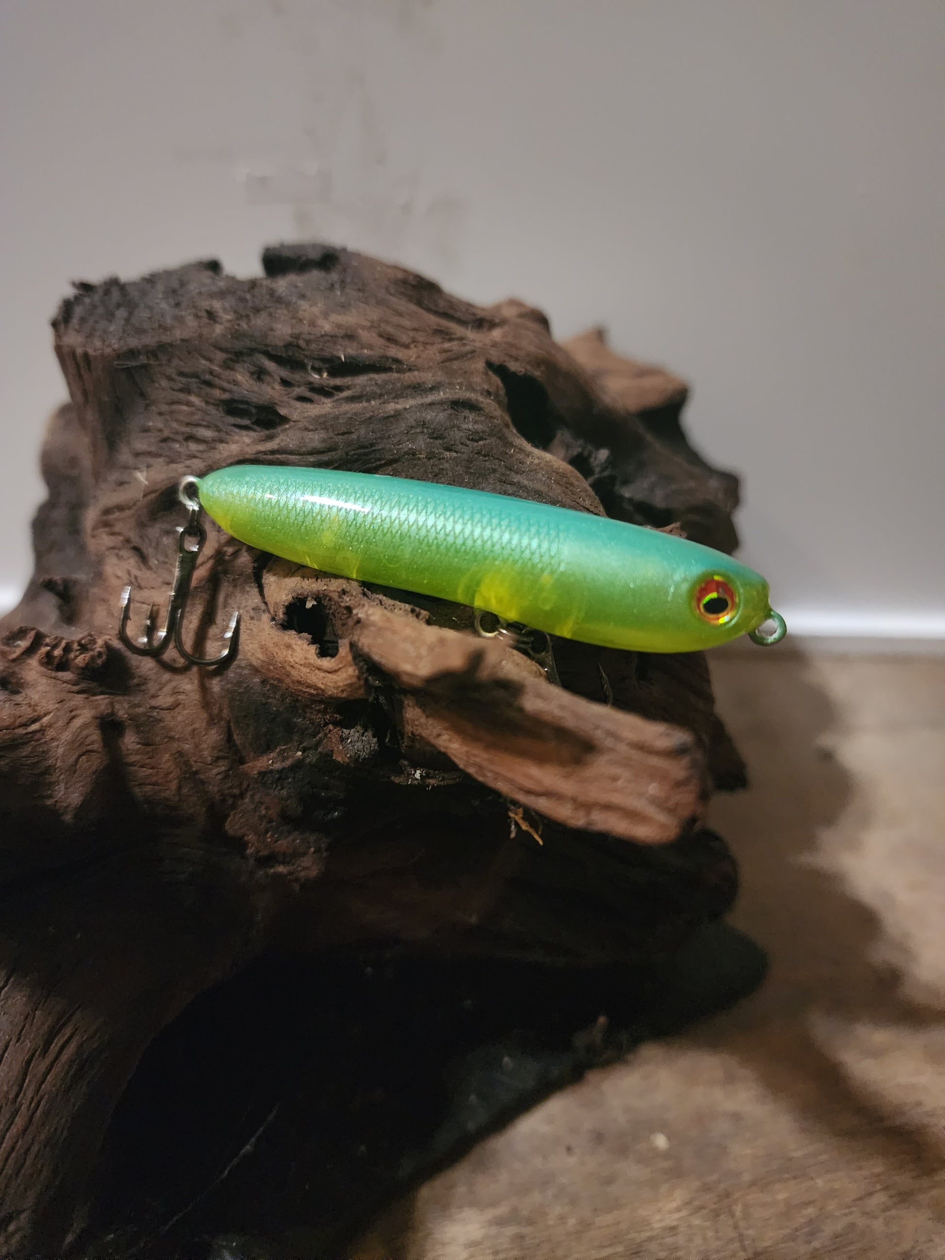 Expertly designed by bigfootlarson, the 3" Walker is a top-of-the-line ¼oz walking bait. Its vibrant "grass hopper" color and 3" size make it perfect for attracting fish in any environment. Don't miss out on this scientifically crafted lure for your next fishing trip.